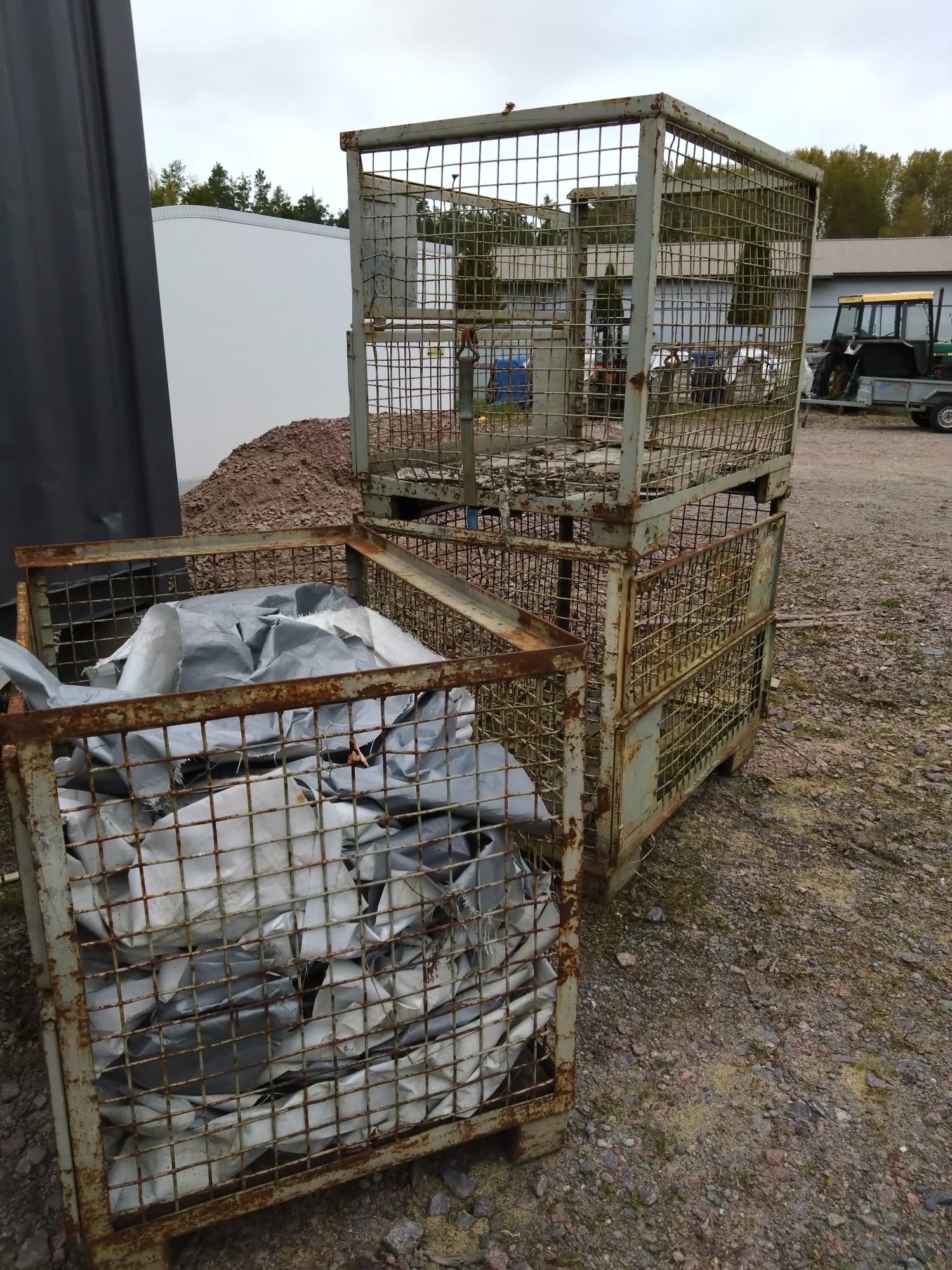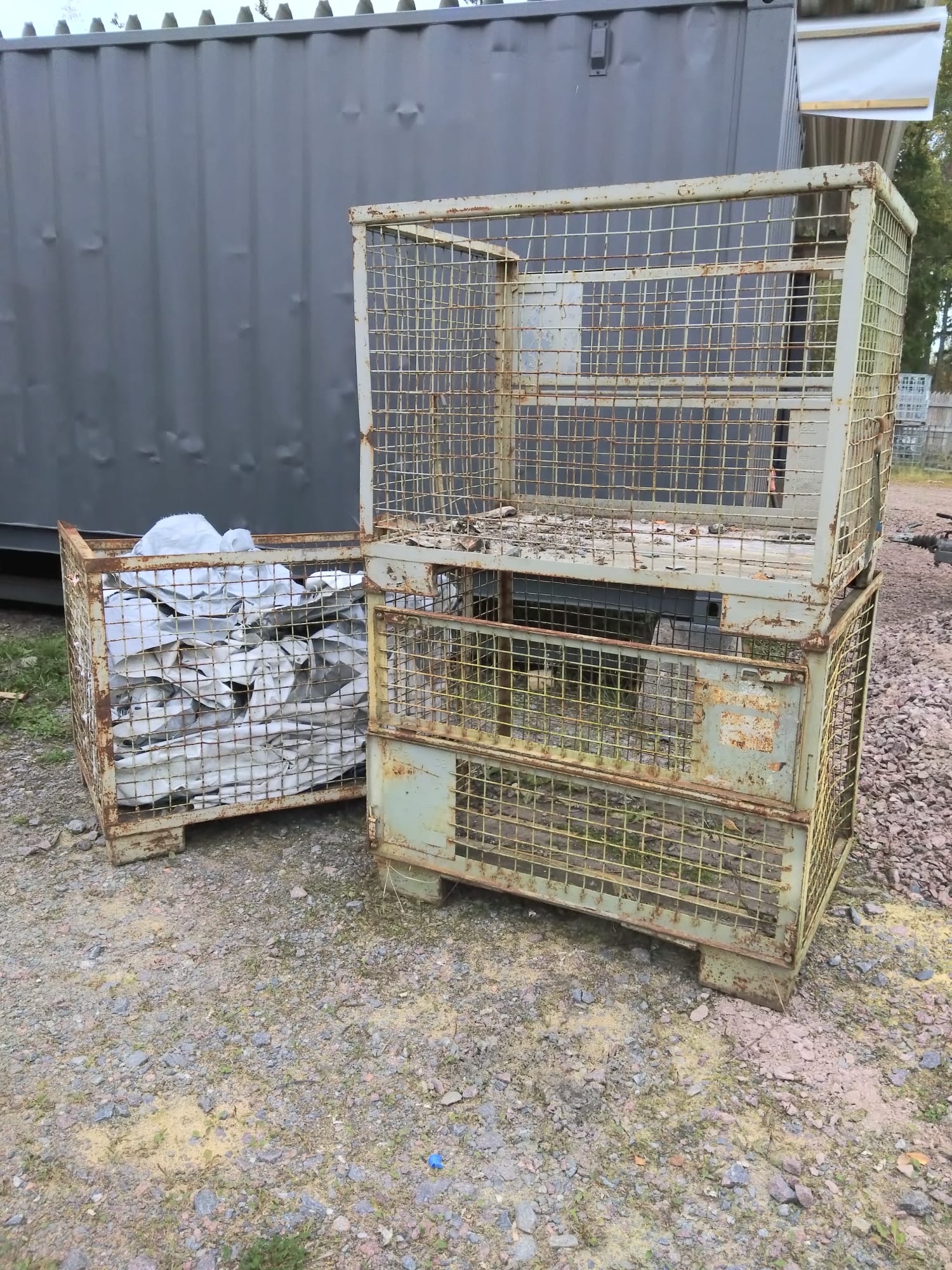 Tilavuus 0,75 m3 ja kantavuus riittävästi. Etuseinät aukaistavia keskeltä. Kuvat pressut kuuluu huutoon. Ovat olleet klapisäkkien päällä. Koot on 1,2-1,5m suuntiinsa.