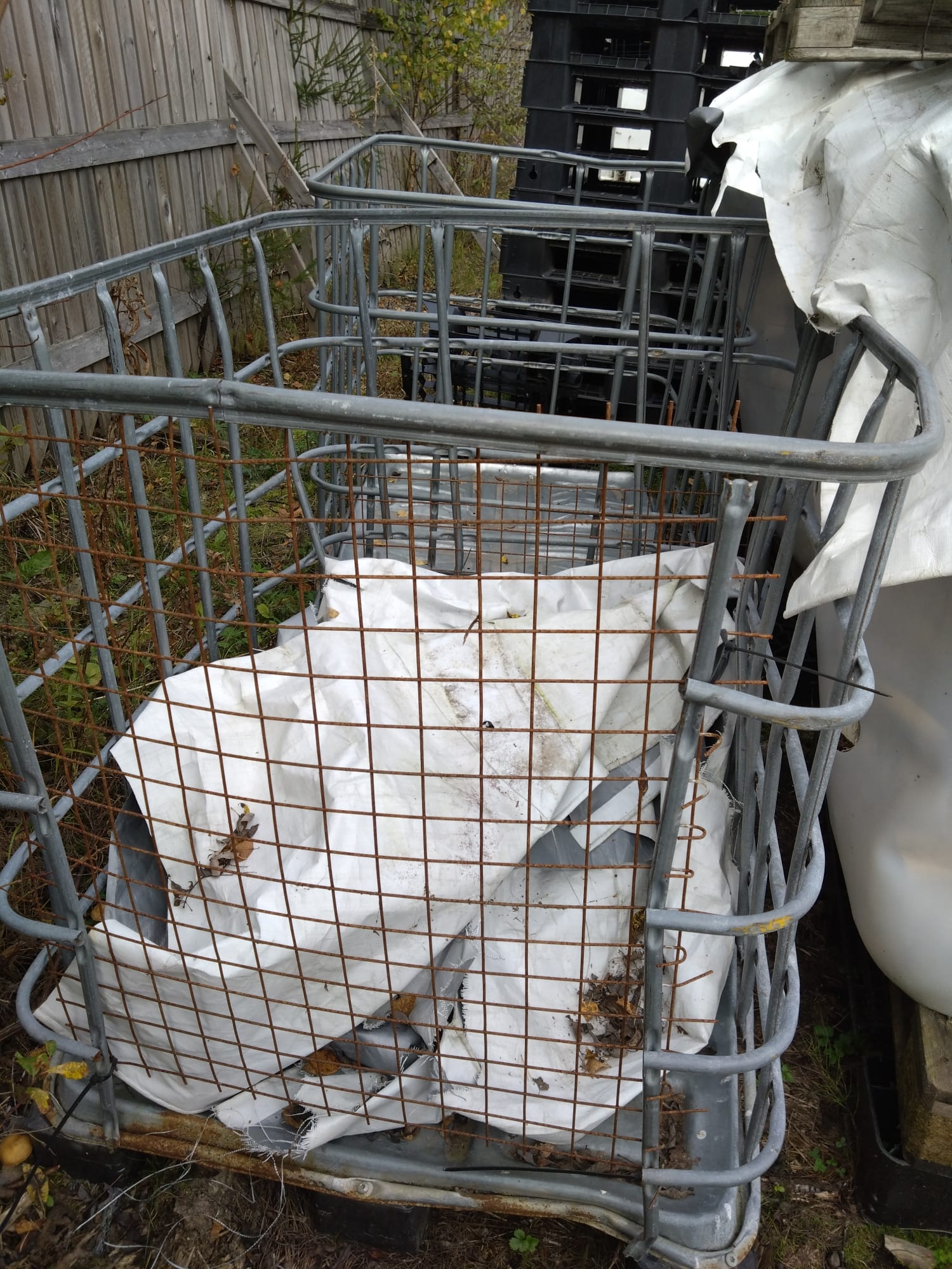 Pressut ovat 300g/neliöpaino ja leikelty suunnilleen kokoon 1,2-1,5metriä kanttiinsa. Olleet klapien suojana näissä häkeissä.