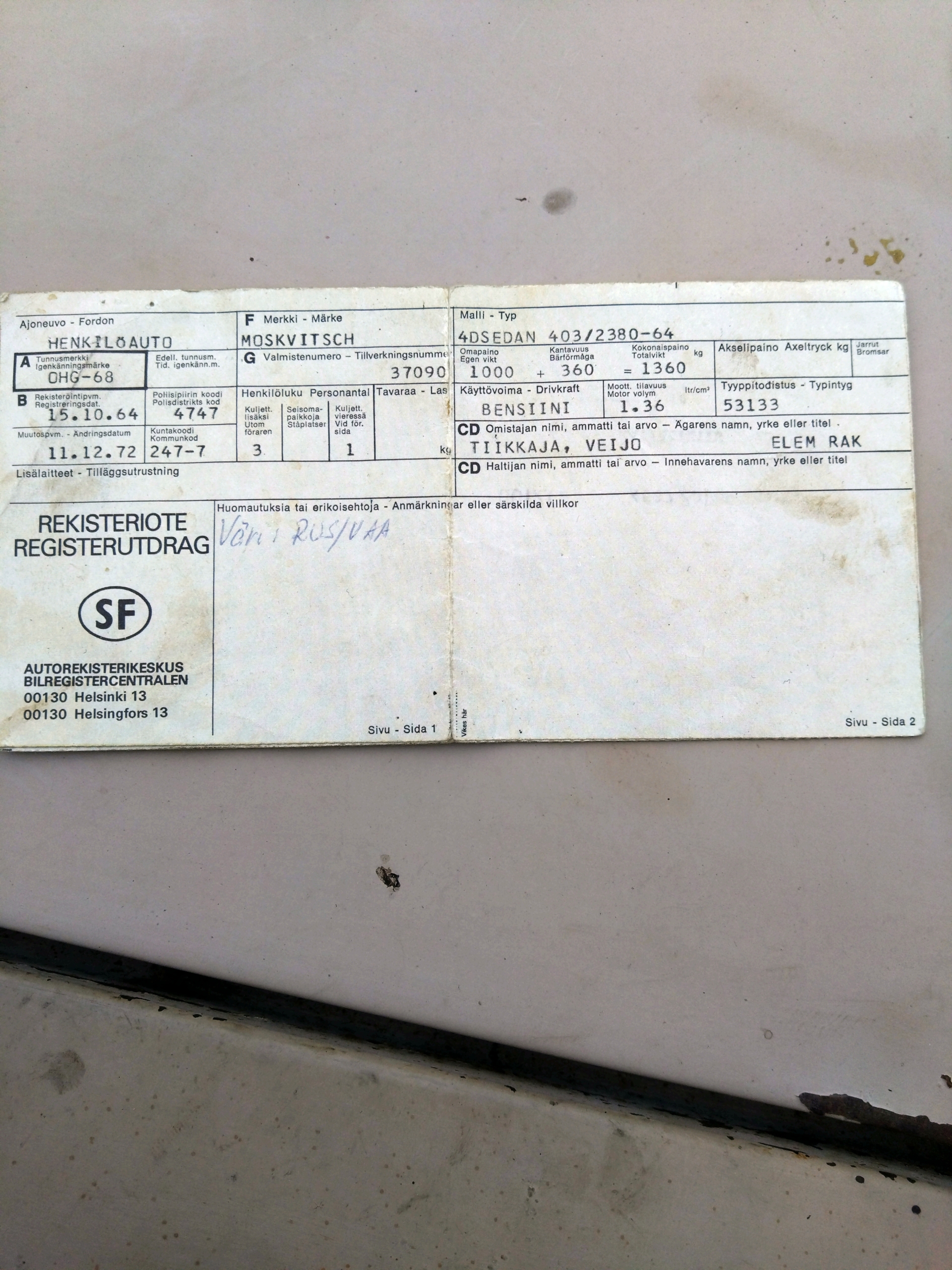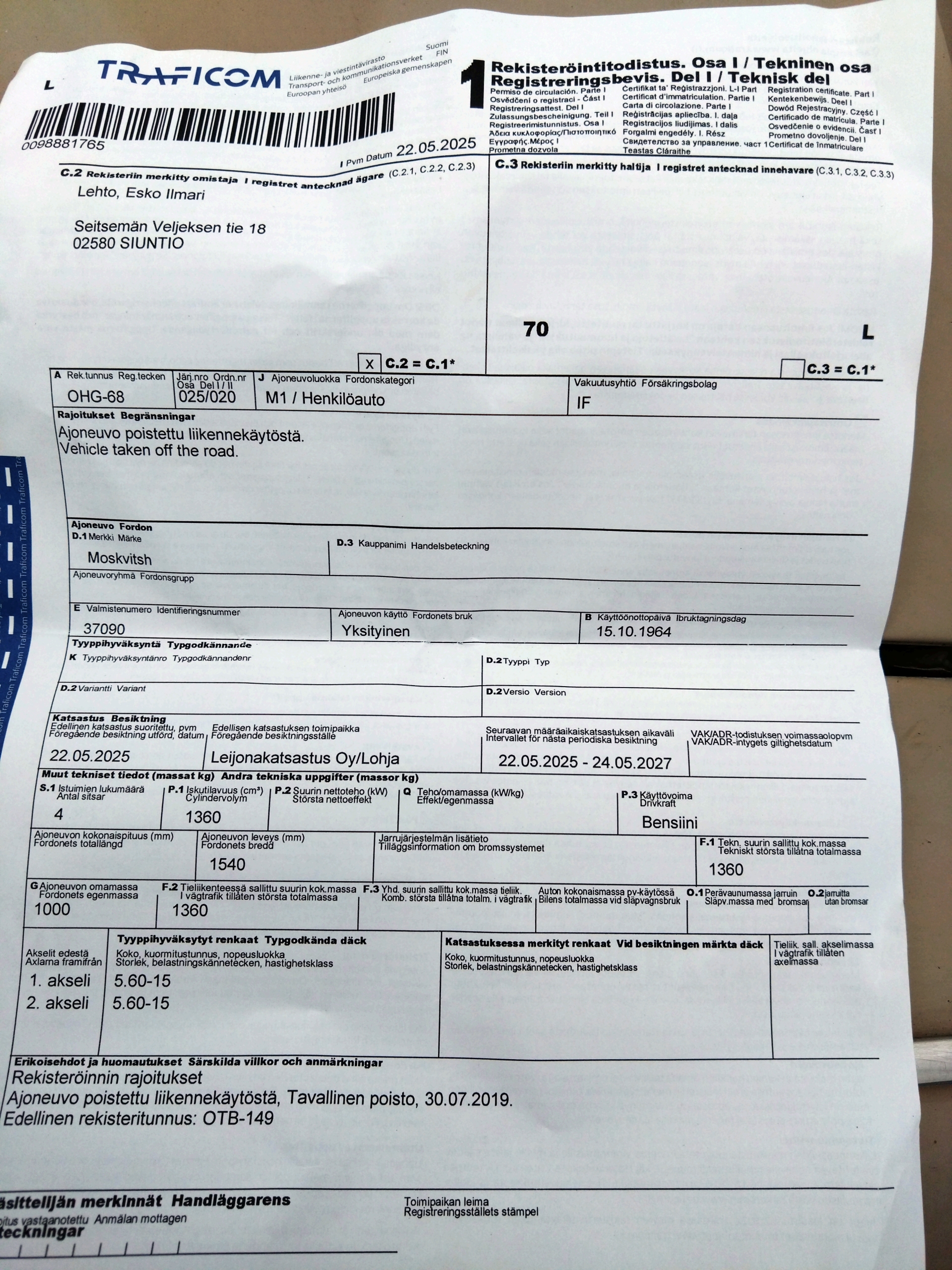 Katsastus voimassa 24.5.27. Yksityinen myyjä, ei alv. Alin hyväksyttävä tarjous huutokaupan päätyttyä 2300 eur!