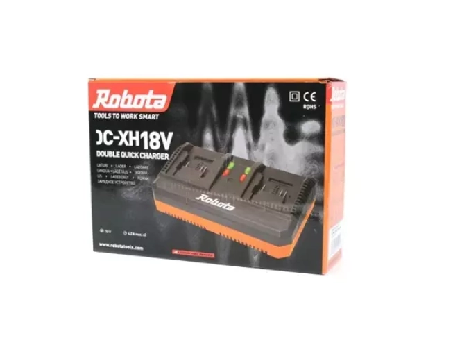 Robota DC-DXH18V tarjoaa 2,3 ampeerin latausvirran kumpaankin latauspaikkaan. Laite toimii tavallisella 230V jännitteellä ja on yhteensopiva kaikkien Robota 18V akkujen kanssa.