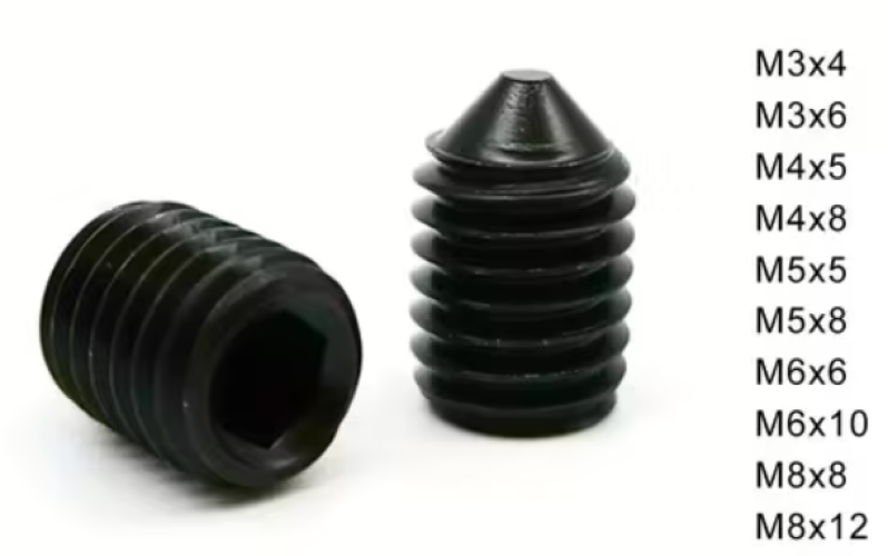 - Kartiomainen lukituskärki: Ruuvissa on tarkasti muotoiltu kartiomainen (kuoppapää / cone point) kärki, joka pureutuu tehokkaasti vastakappaleen pintaan. Tämä rakenne takaa erittäin tiukan ja tärinänkestävän lukituksen, estäen ruuvin itsestään löystymisen.