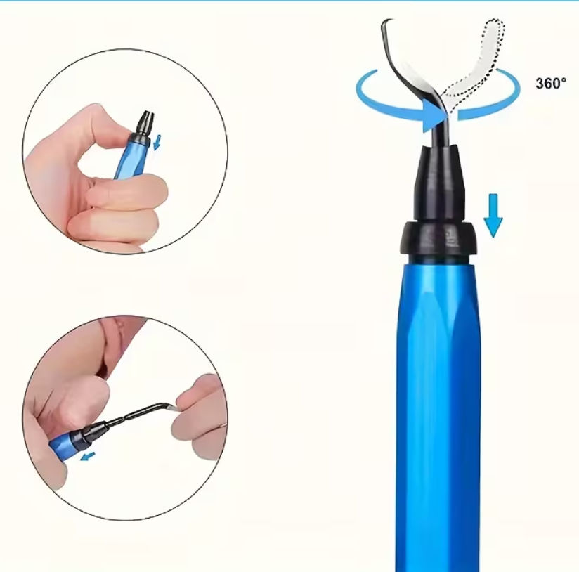 - Kattava Sarja: 11-osainen kokoonpano sisältää useita teriä, mikä takaa oikean työkalun lähes jokaiseen purseenpoistotarpeeseen. Terät ovat helposti vaihdettavissa ja säilytettävissä.