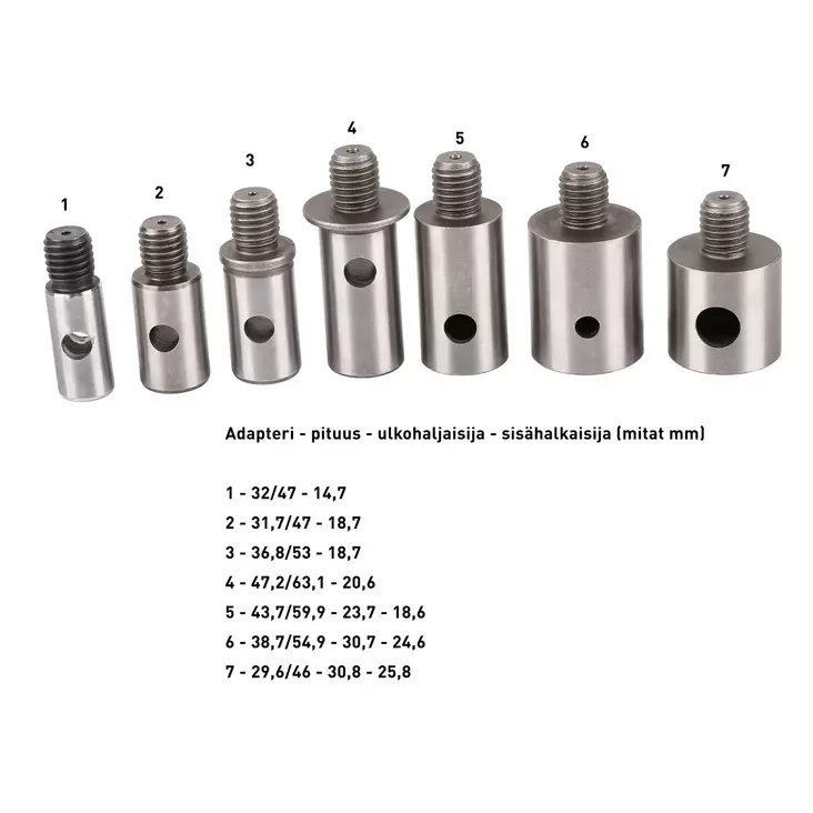 - Sisältää adapterit seuraaviin kairoihin: Rammer, UR/Heinola, Mora Expert, Mora Nova