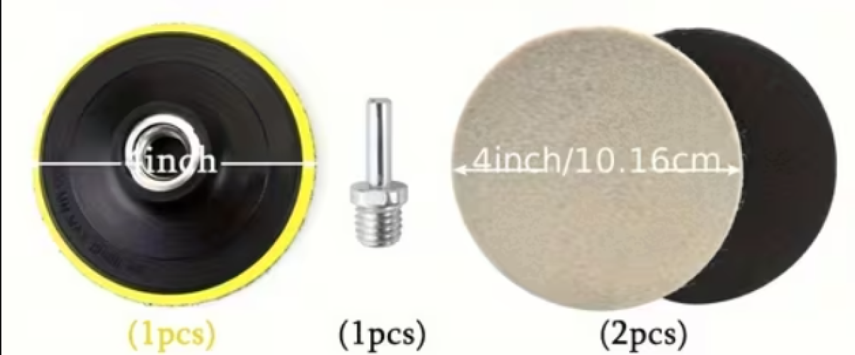 • Standardi kiinnitys: Mukana tuleva 4 tuuman tukityyny on varustettu yleisellä 5/8"-11 kierteellä, joka sopii useimpiin kulmahiomakoneisiin ja kiillotuskoneisiin. Sarjaa voidaan käyttää myös porakoneessa erillisen adapterin kanssa.