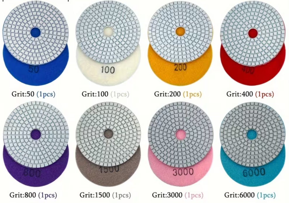 • Märkä- ja kuivakäyttö: Tyynyt on suunniteltu kestämään sekä vesijäähdytteistä hiontaa (suositeltu optimaalisen tuloksen ja kestävyyden saavuttamiseksi) että nopeaa kuivahiontaa.